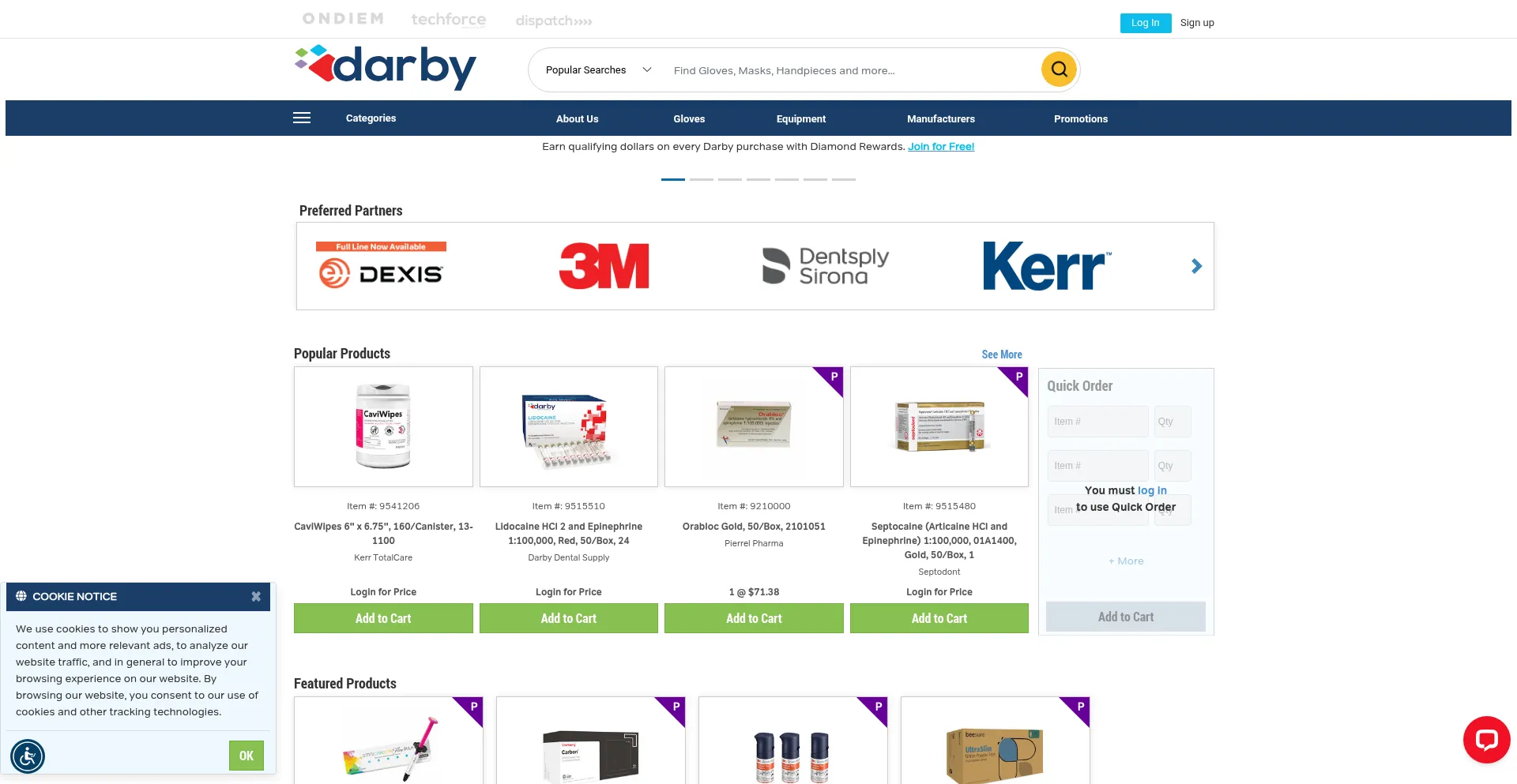 分析表明 darbydental.com 作为电子商务平台运营,促进商品或服务的在线交易。该网站实现了购物车功能、支付处理系统和产品目录功能,这些是商业零售运营的典型特征。