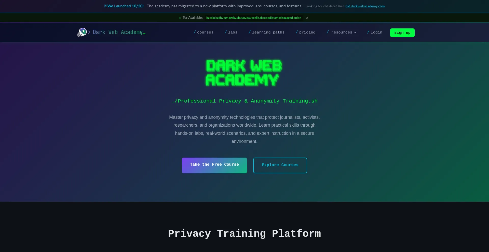 Learn cybersecurity, privacy, and anonymity with hands-on labs and expert-led courses. Master Tor, Tails, OPSEC, and dark web technologies.