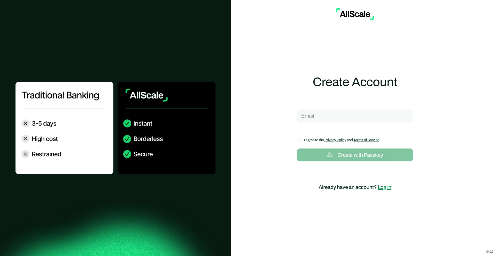该网站实现数据收集表单,请求个人信息,包括姓名、电子邮件地址、电话号码或其他敏感详细信息。用户应验证 dashboard.allscale.io 的合法性并在提交个人数据前查看隐私政策。