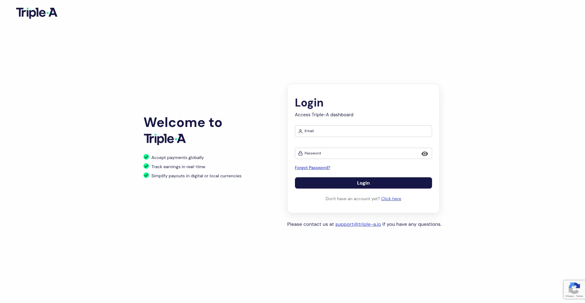 该网站实现数据收集表单,请求个人信息,包括姓名、电子邮件地址、电话号码或其他敏感详细信息。用户应验证 dashboard.triple-a.io 的合法性并在提交个人数据前查看隐私政策。