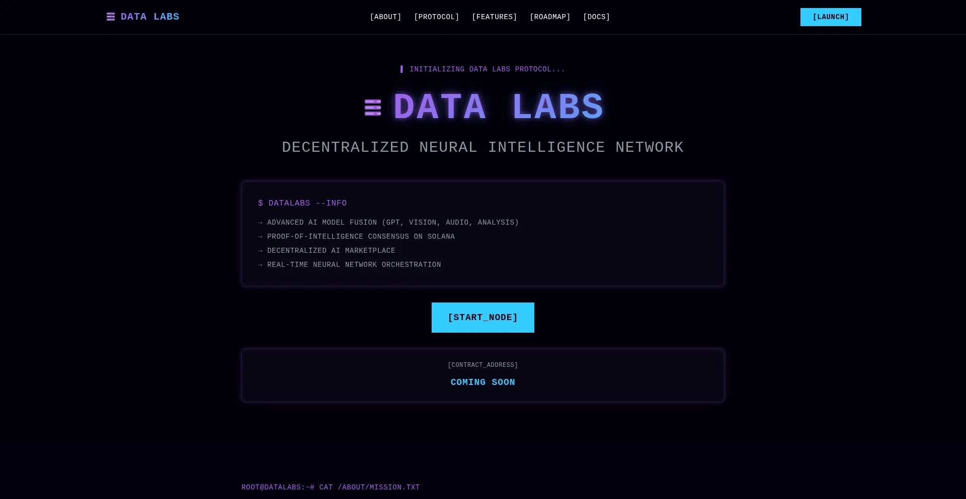 DATA LABS is a decentralized artificial intelligence network (DeAIN) that creates the world's first community-owned neural intelligence layer.