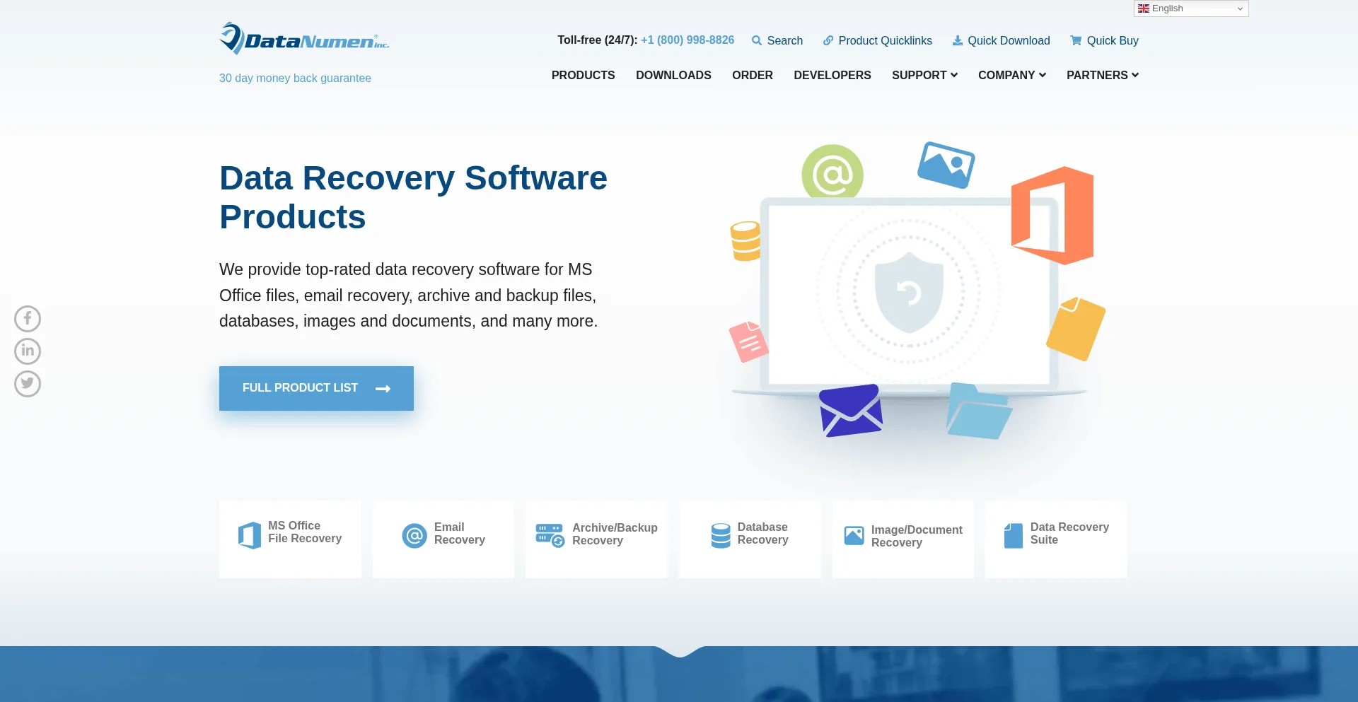 网站上存在社交媒体链接表明 datanumen.com 在社交媒体上维护官方账户,这是可信度和参与度的积极信号。