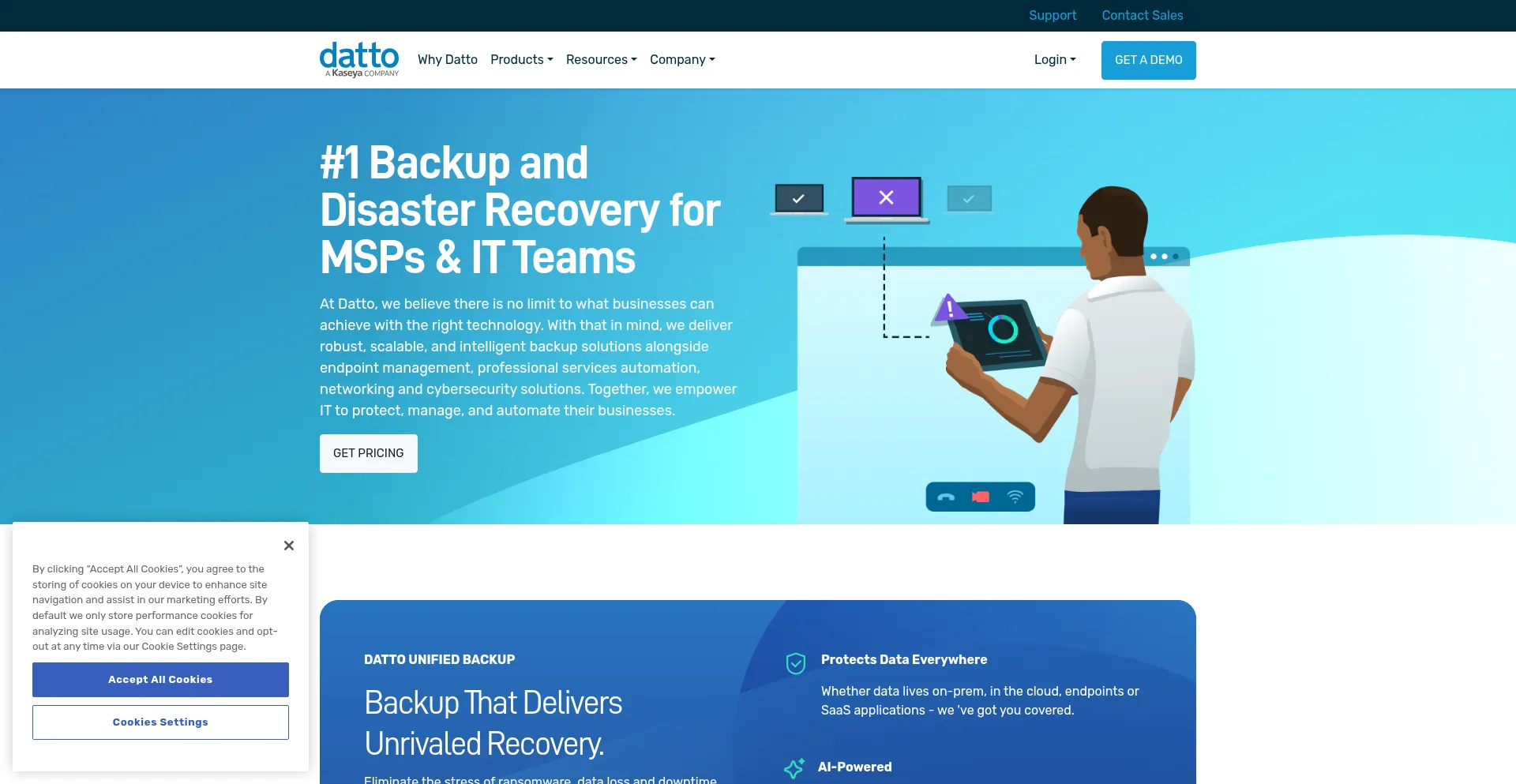 该网站实现符合GDPR或CCPA等隐私法规的cookie同意机制。这表明 datto.com 遵守数据保护标准并为用户提供对个人数据收集实践的控制。