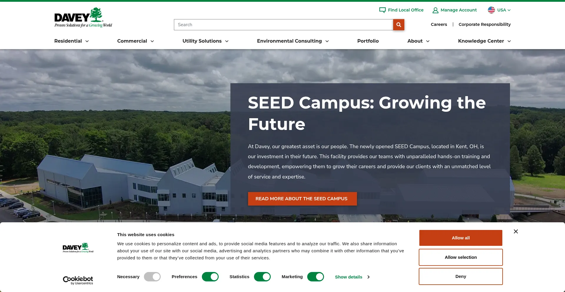 该网站实现符合GDPR或CCPA等隐私法规的cookie同意机制。这表明 davey.com 遵守数据保护标准并为用户提供对个人数据收集实践的控制。