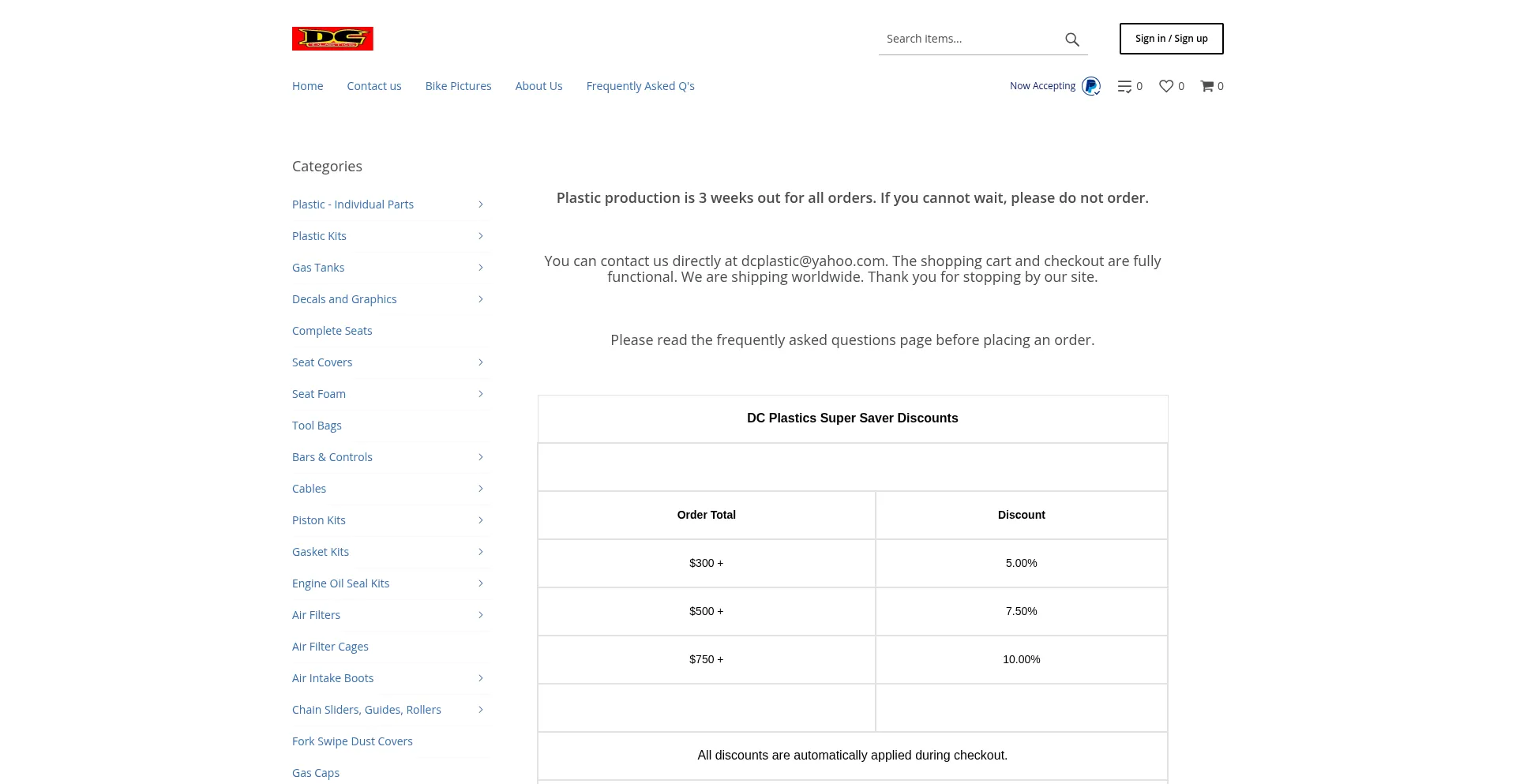 Plastic production is 3 weeks out for all orders. If you cannot wait, please do not order. You can contact us directly at [email protected]. The shopping cart and checkout are...