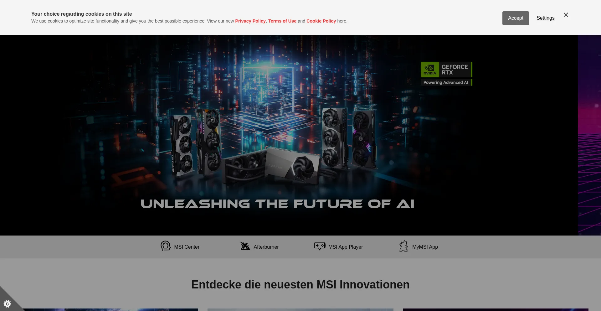 该网站实现符合GDPR或CCPA等隐私法规的cookie同意机制。这表明 de.msi.com 遵守数据保护标准并为用户提供对个人数据收集实践的控制。