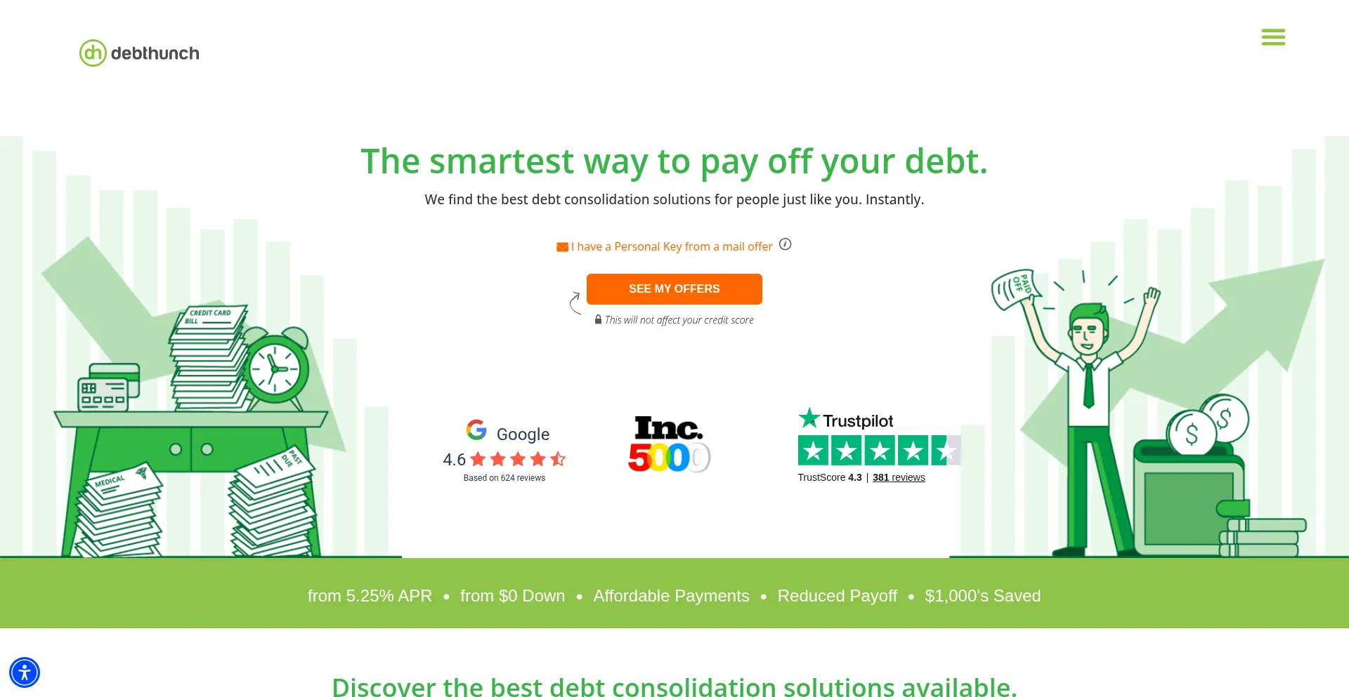 debthunch.com 使用 Bootstrap,这是一个广泛采用的开源响应式网页开发框架。Bootstrap 通过标准化组件和样式实现移动友好界面的高效创建。
