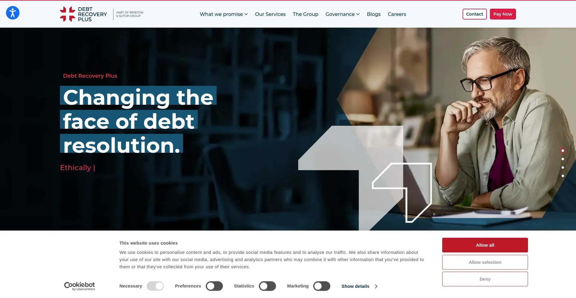 该网站实现符合GDPR或CCPA等隐私法规的cookie同意机制。这表明 debtrecoveryplus.co.uk 遵守数据保护标准并为用户提供对个人数据收集实践的控制。
