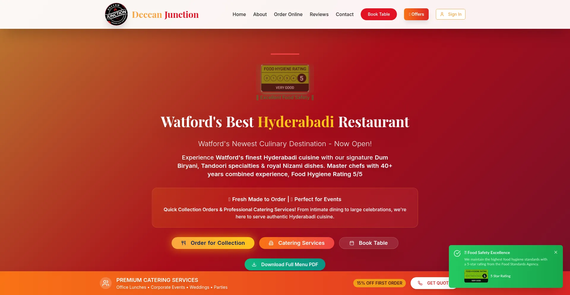 Deccan Junction Watford | Best Indian Restaurant & Authentic Hyderabadi Biryani | Professional UI/UX Design | Order Online