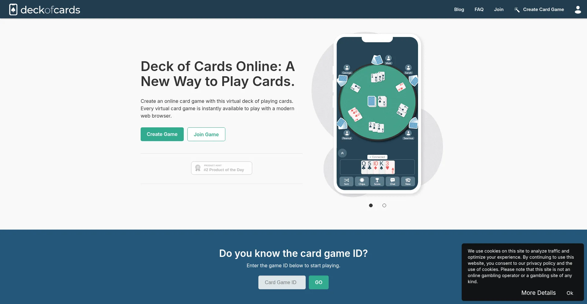 deckofcards.net 在 Product Hunt 上列出,这是一个产品发现和社区反馈平台。
