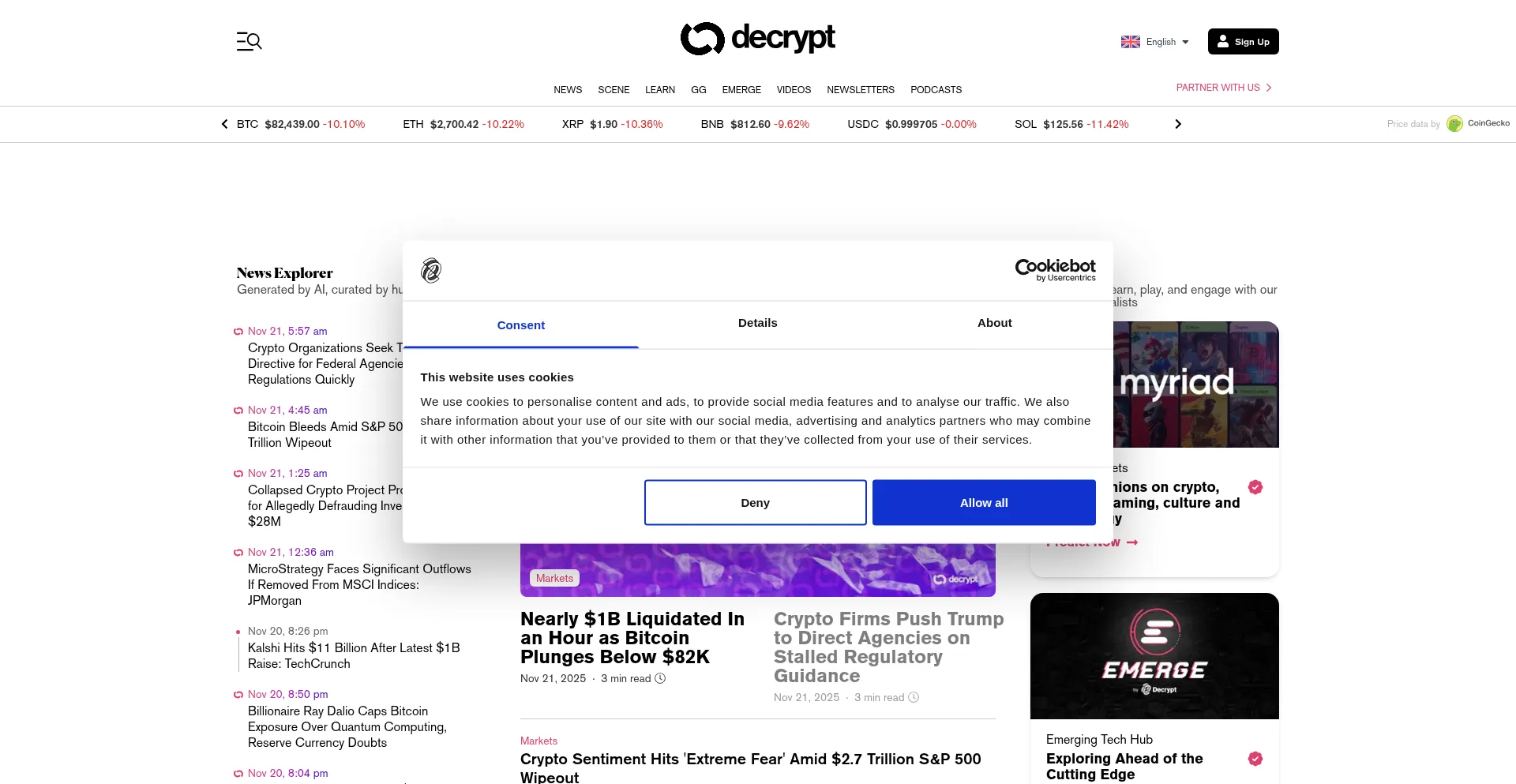 该网站实现符合GDPR或CCPA等隐私法规的cookie同意机制。这表明 decrypt.co 遵守数据保护标准并为用户提供对个人数据收集实践的控制。