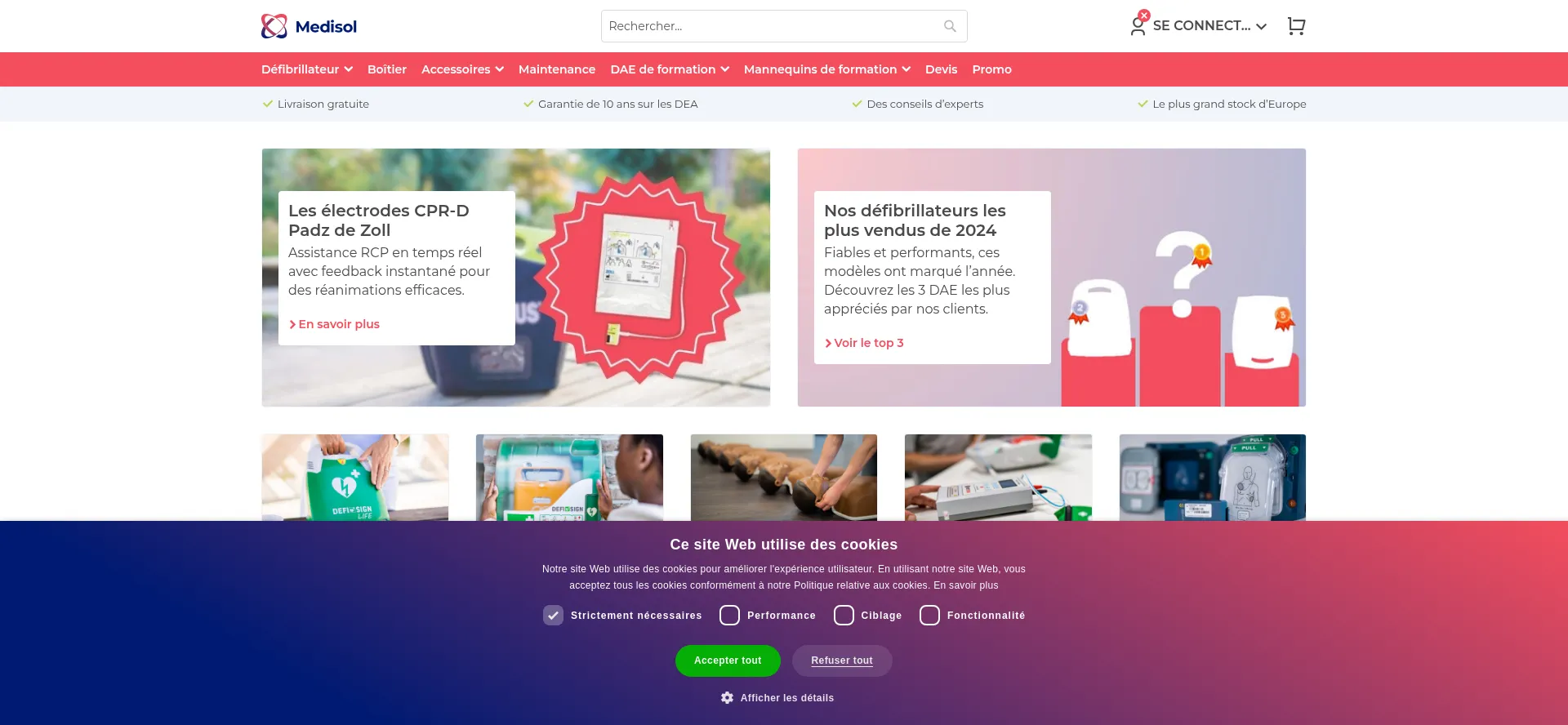 Medisol : Fournisseur de défibrillateurs, électrodes et batteries en France. Profitez de prix hyper compétitifs sur les produits des marques Zoll, Philips, Schiller.