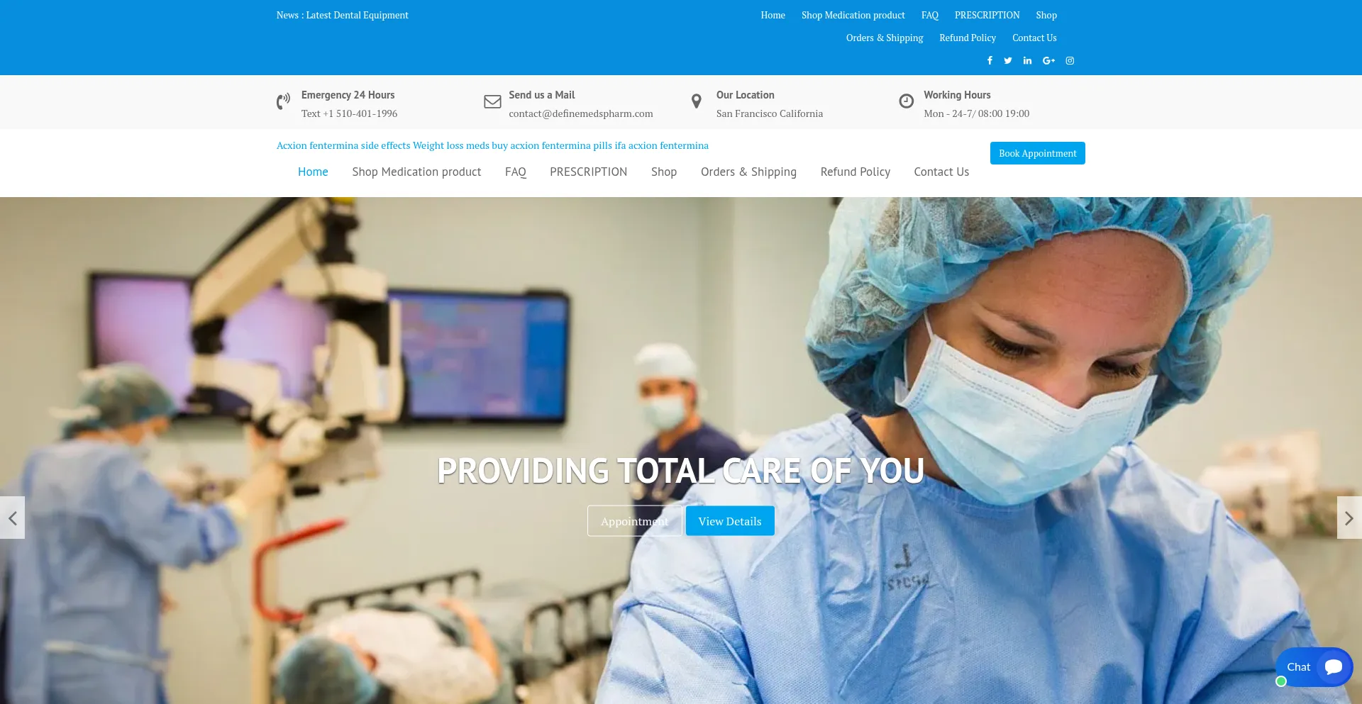 网站上存在社交媒体链接表明 definemedspharm.com 在社交媒体上维护官方账户,这是可信度和参与度的积极信号。