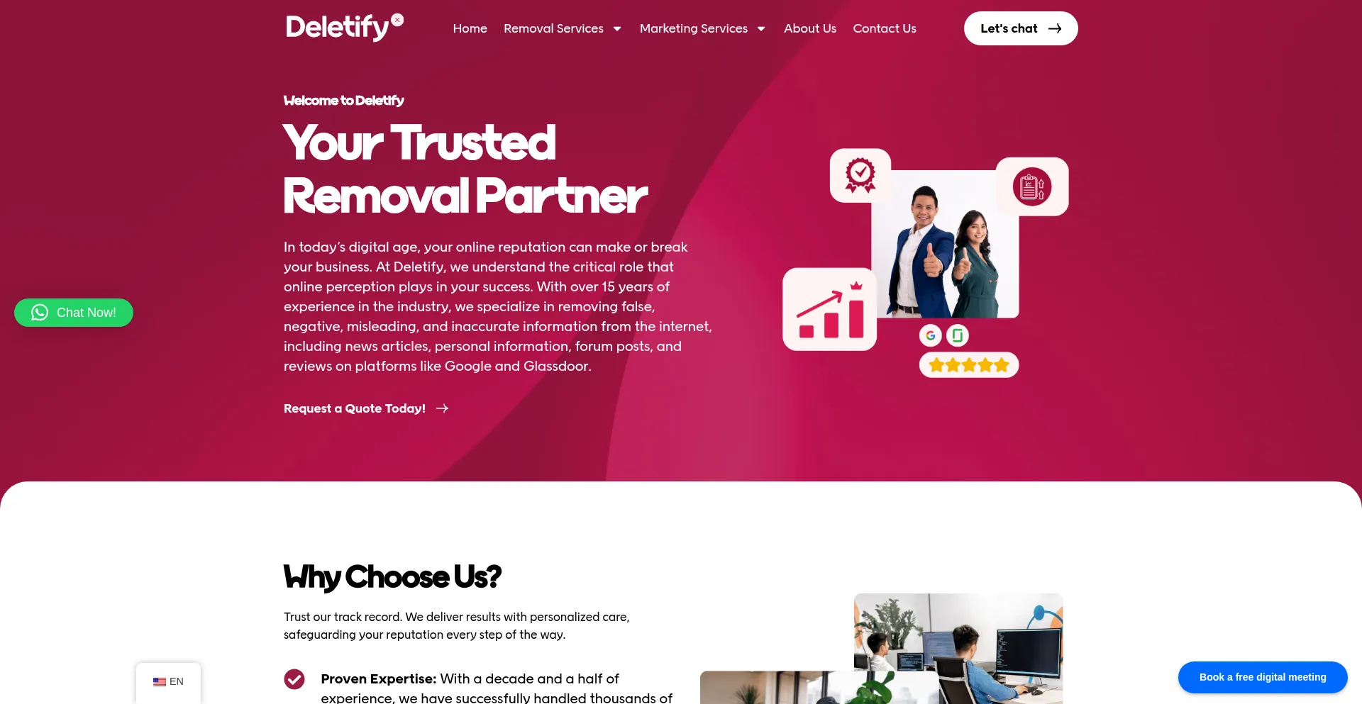 该域名在延长期间保持活跃状态,表明运营稳定性和已建立的网络存在。deletify.com 的这种长寿性表明合法的商业运营和随时间推移的持续用户参与。