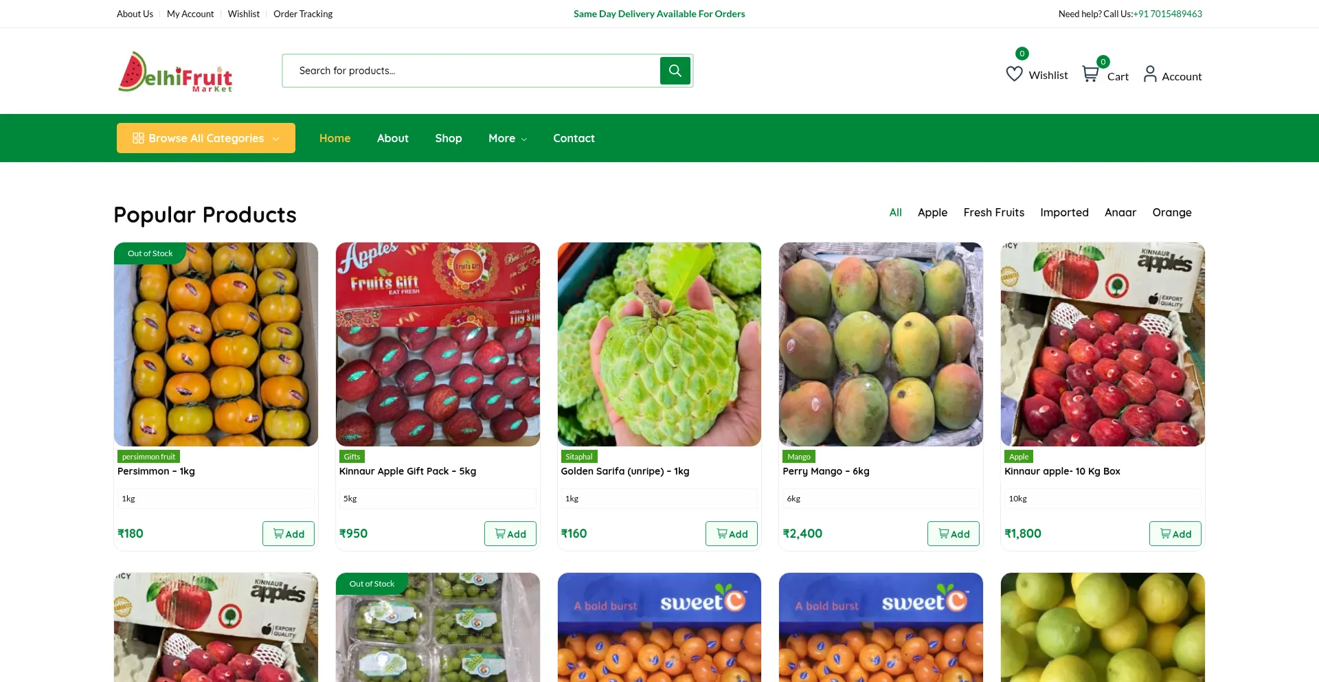 delhifruitmarket.com 提供 Android 设备移动应用程序,表明平台存在已扩展到网络服务之外。