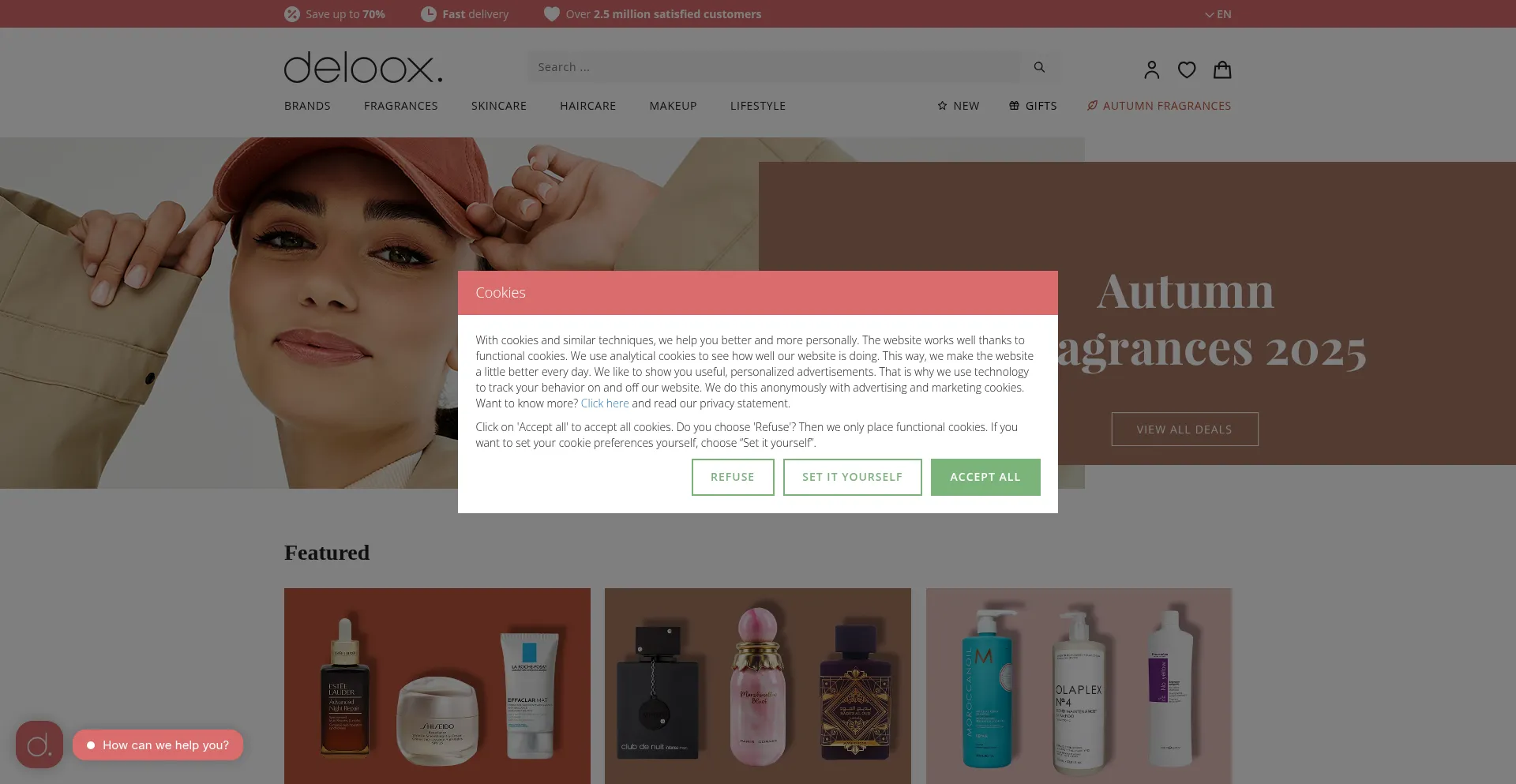 Deloox offers you the best brands and best deals in fragrances, skin & body care, make-up and hair care. More than 2.5 million satisfied customers!