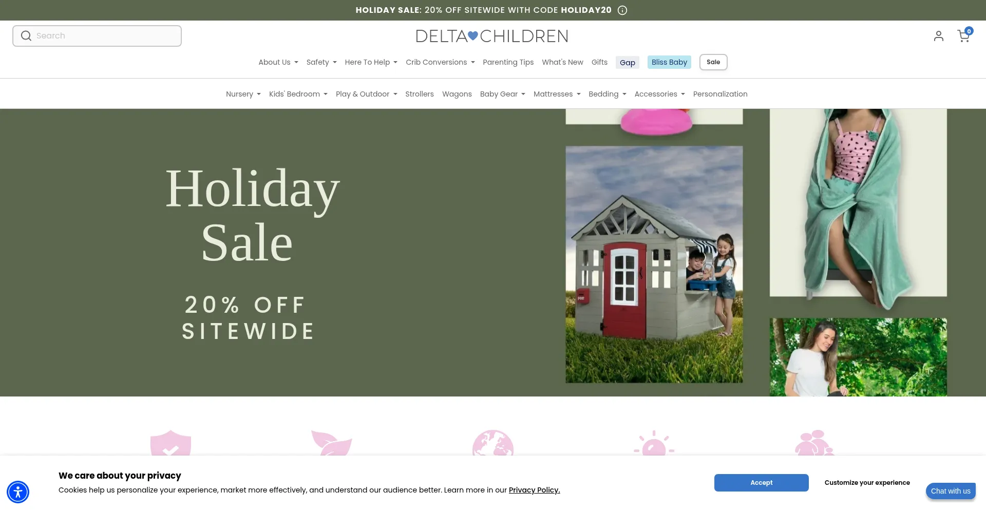 分析表明 deltachildren.com 作为电子商务平台运营,促进商品或服务的在线交易。该网站实现了购物车功能、支付处理系统和产品目录功能,这些是商业零售运营的典型特征。