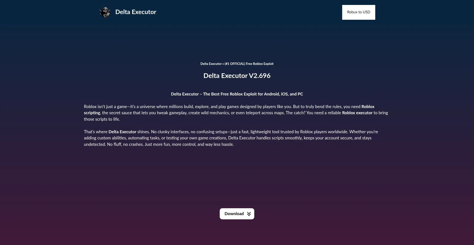 Install Delta Executor for Android & iOS. Download the latest version of this Roblox exploits tool—safe, fast, & undetected. Unlock premium Roblox features now!