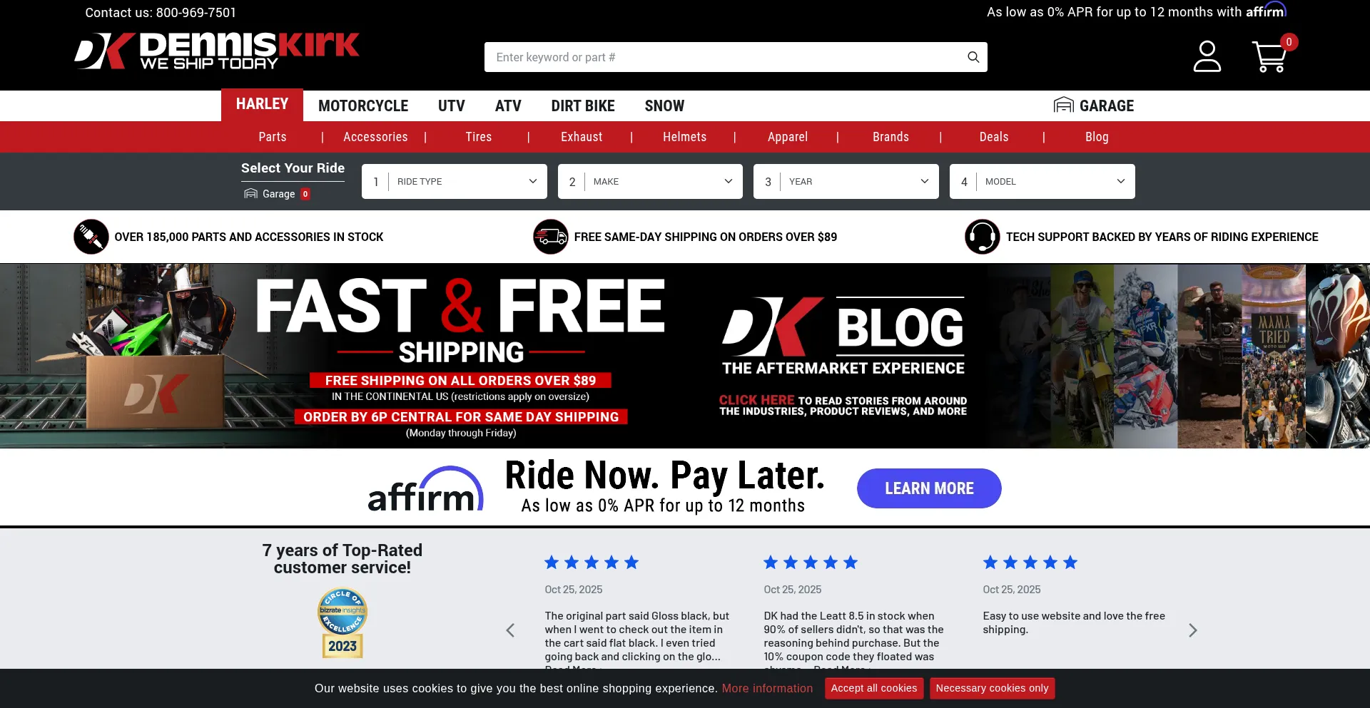 Dennis Kirk has been the leader in Powersports aftermarket parts and accessories since 1969. Over 160,000 unique items in stock & ready to ship today.