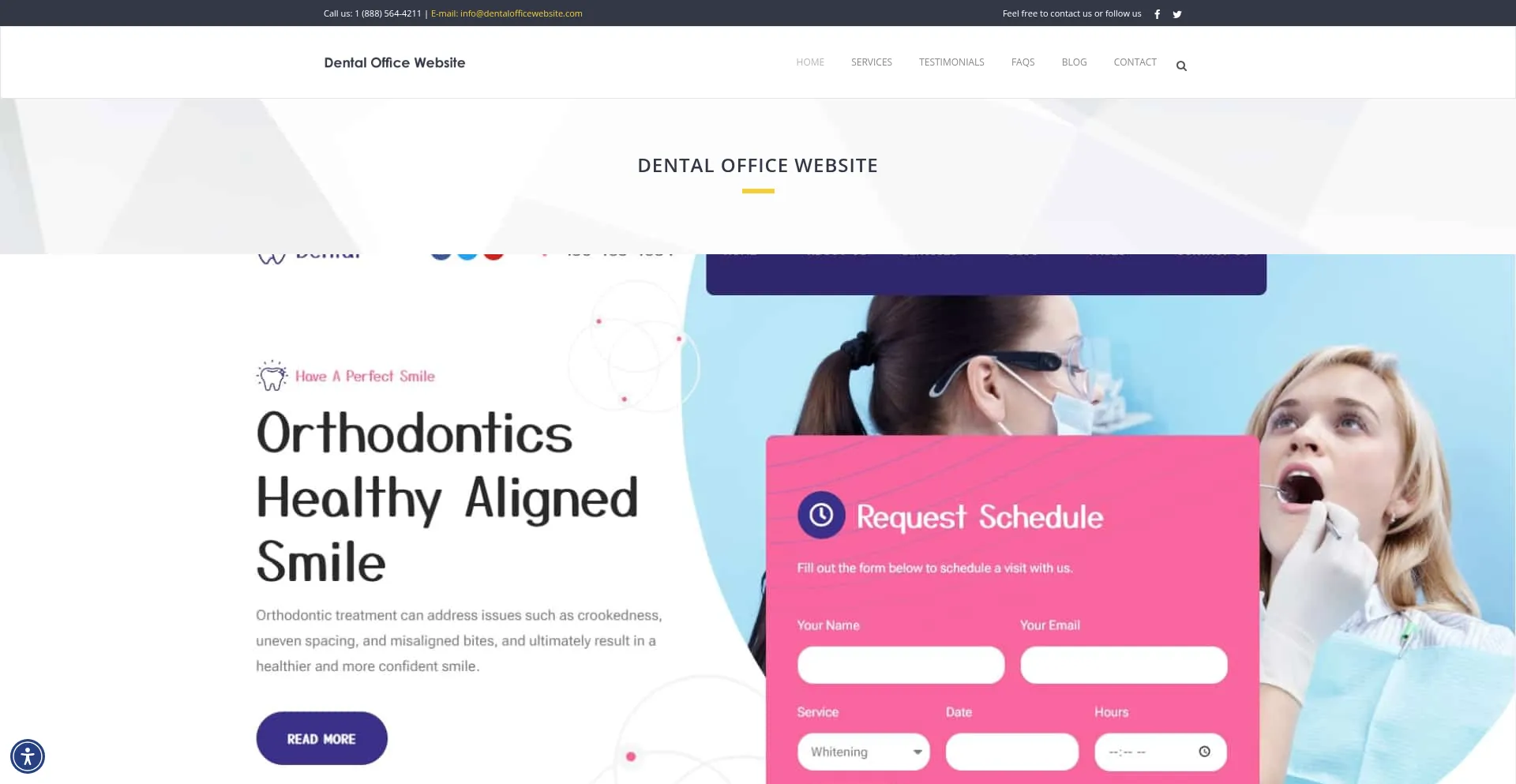 网站上存在社交媒体链接表明 dentalofficewebsite.com 在社交媒体上维护官方账户,这是可信度和参与度的积极信号。