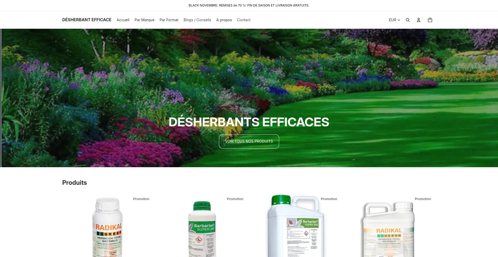 Découvrez notre sélection de désherbants efficaces (Radikal, Roundup, Barbarian). Livraison rapide, prix compétitifs et résultats garantis pour votre jardin.