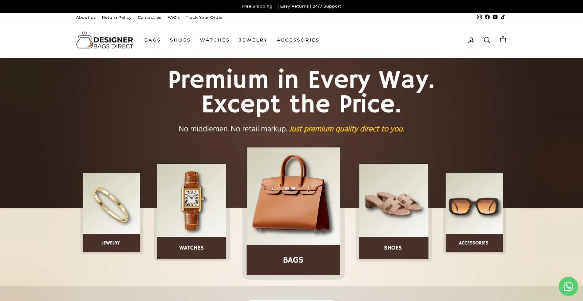分析表明 designerbags-direct.com 作为电子商务平台运营,促进商品或服务的在线交易。该网站实现了购物车功能、支付处理系统和产品目录功能,这些是商业零售运营的典型特征。