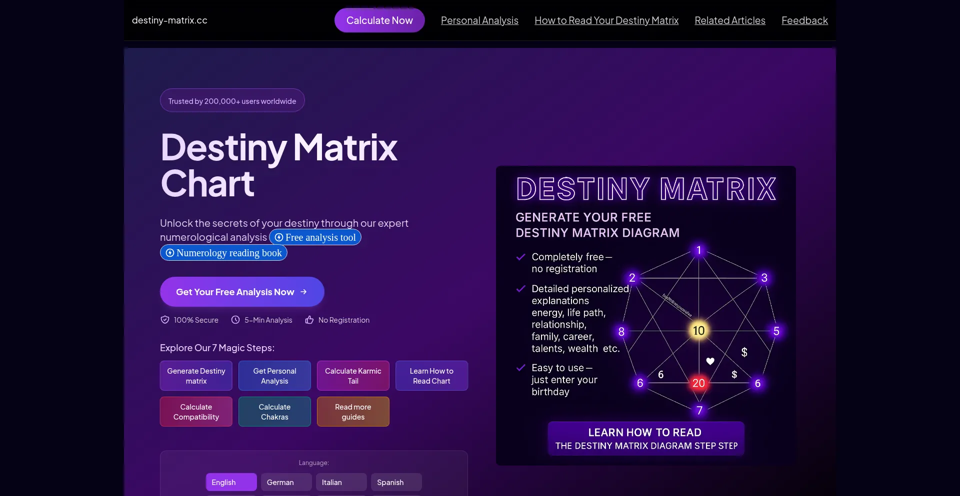 Unlock your destiny through sacred numbers - 100% free, instant personal analysis. Discover your life path and spiritual blueprint. No registration required.