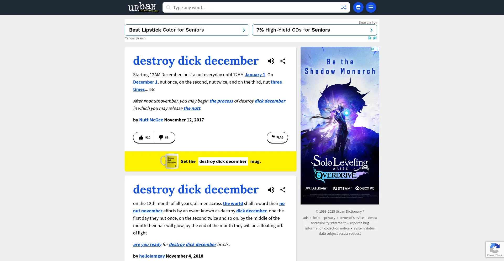 destroy dick december: Starting 12AM December, bust a nut everyday until 12AM January 1. On December 1, nut once, on the second, nut twice, and on the...
