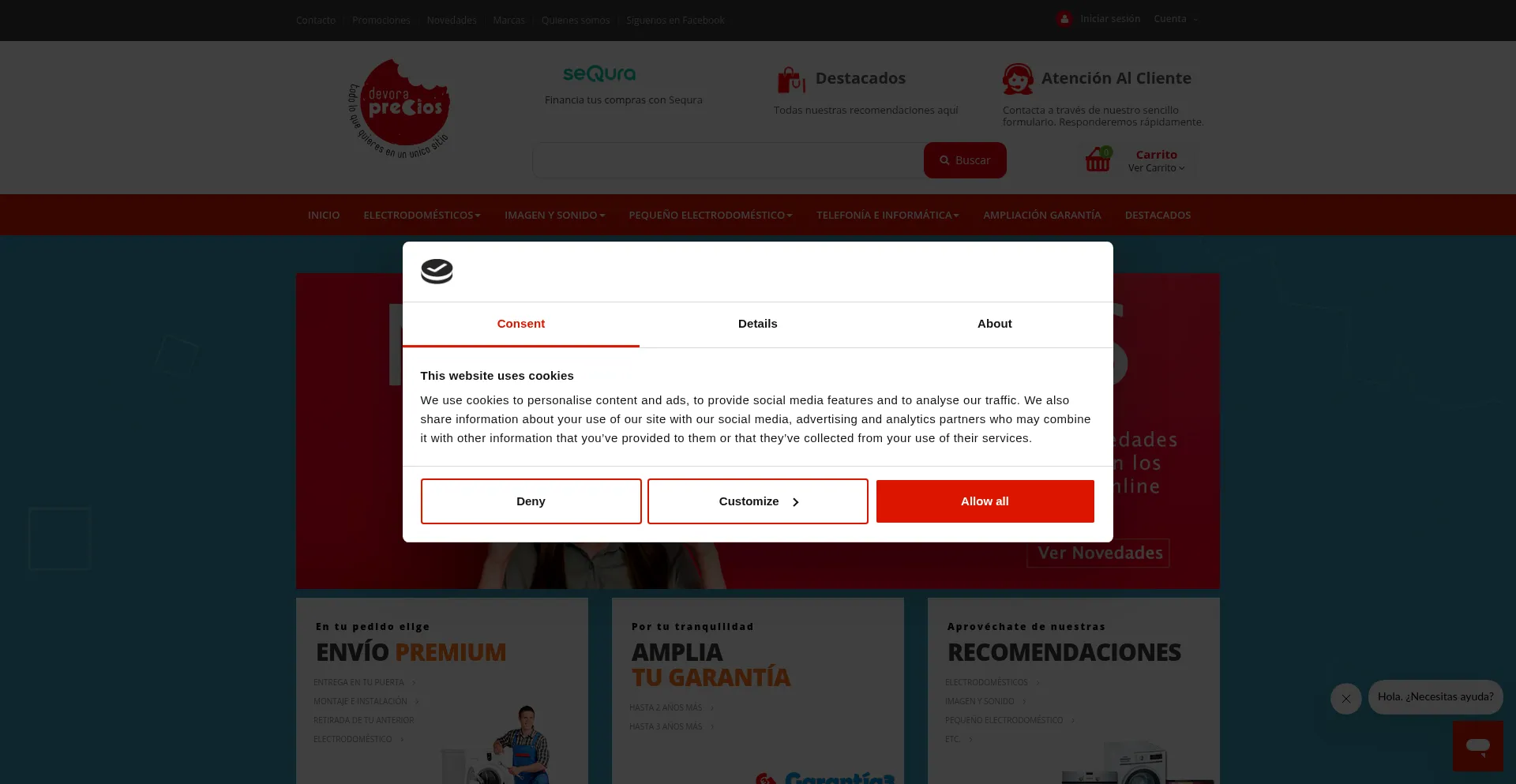 该网站实现符合GDPR或CCPA等隐私法规的cookie同意机制。这表明 devoraprecios.com 遵守数据保护标准并为用户提供对个人数据收集实践的控制。