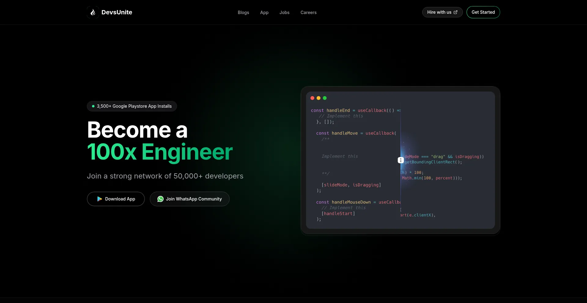 DevsUnite - Become a 100x Engineer | Developer Community Platform