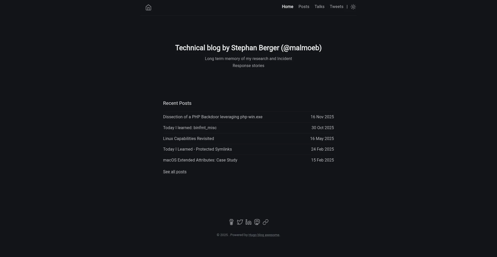网站上存在社交媒体链接表明 dfir.ch 在社交媒体上维护官方账户,这是可信度和参与度的积极信号。
