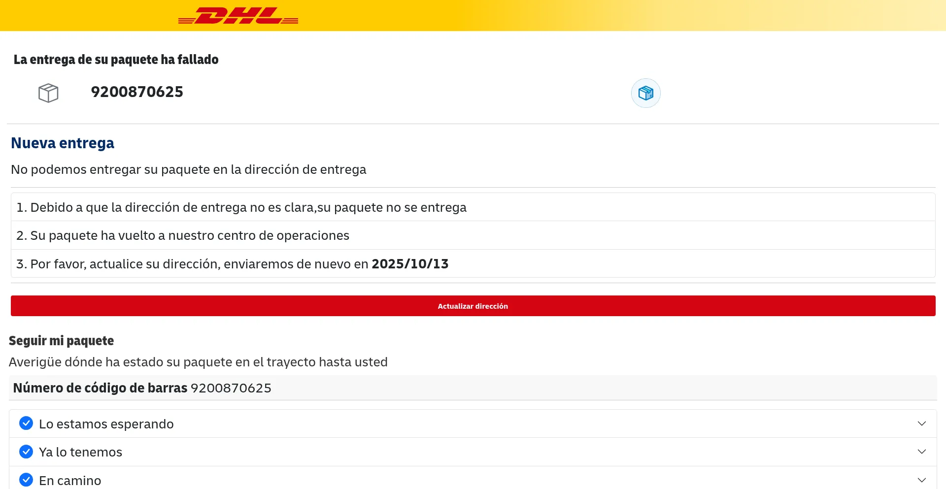 该网站与已知的网络钓鱼操作表现出强烈相似性,旨在冒充可信实体并窃取用户凭据、支付信息或个人数据。与 dhlasd.us.cc 交互时要格外谨慎,避免输入敏感信息。