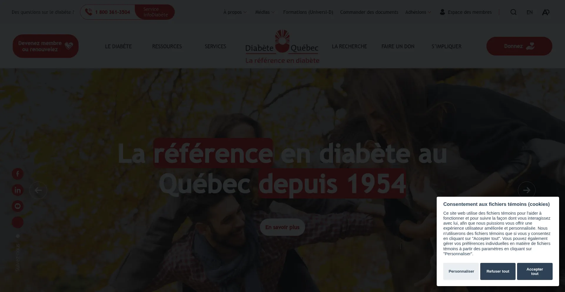 Depuis 1954, Diabète Québec accompagne les personnes vivant avec le diabète, leur entourage et les professionnels de la santé qui les soutiennent.