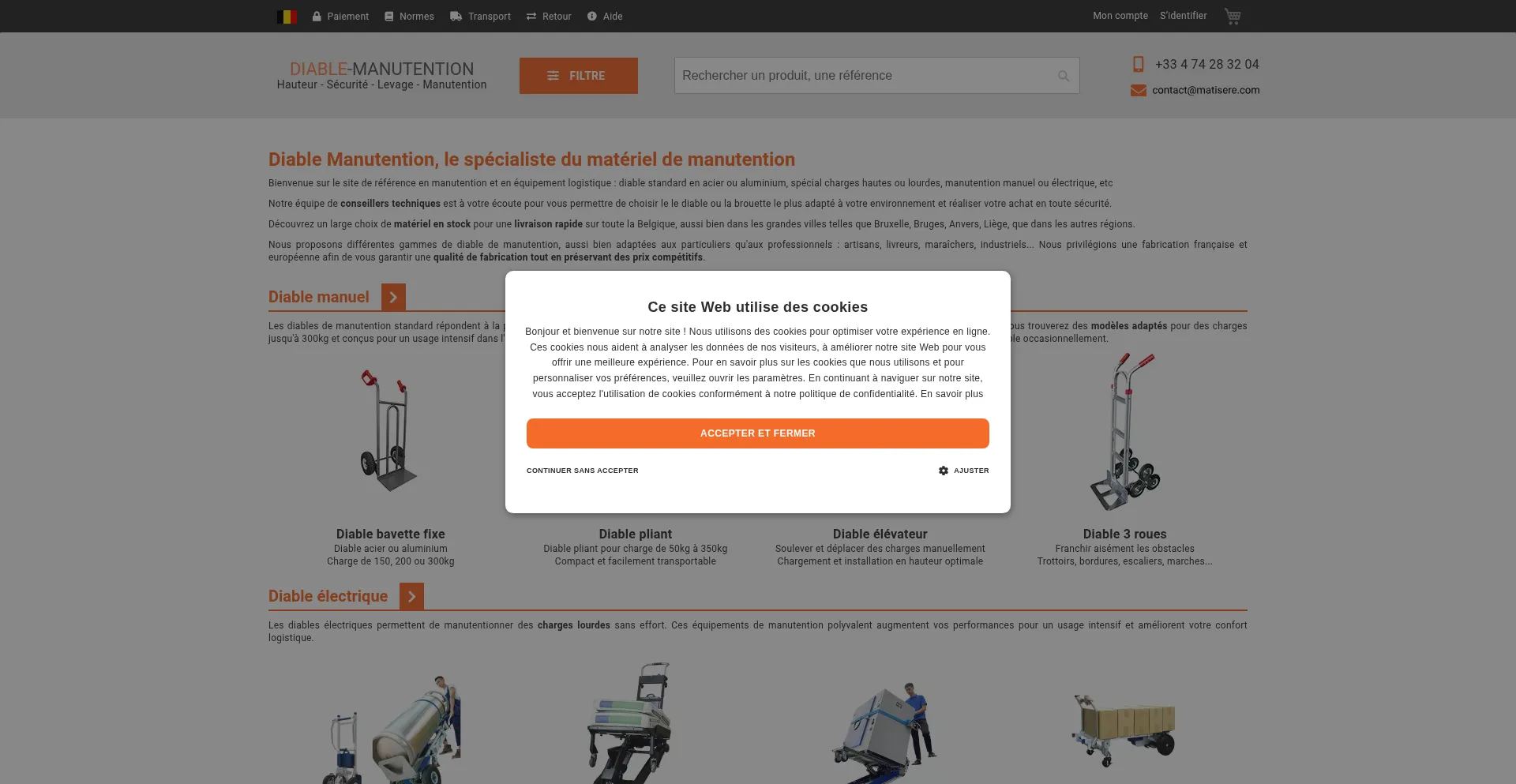 Tous les diables de manutention sont en vente sur notre site internet. Bienvenue chez le spécialiste des diables et de tous équipements de levage.