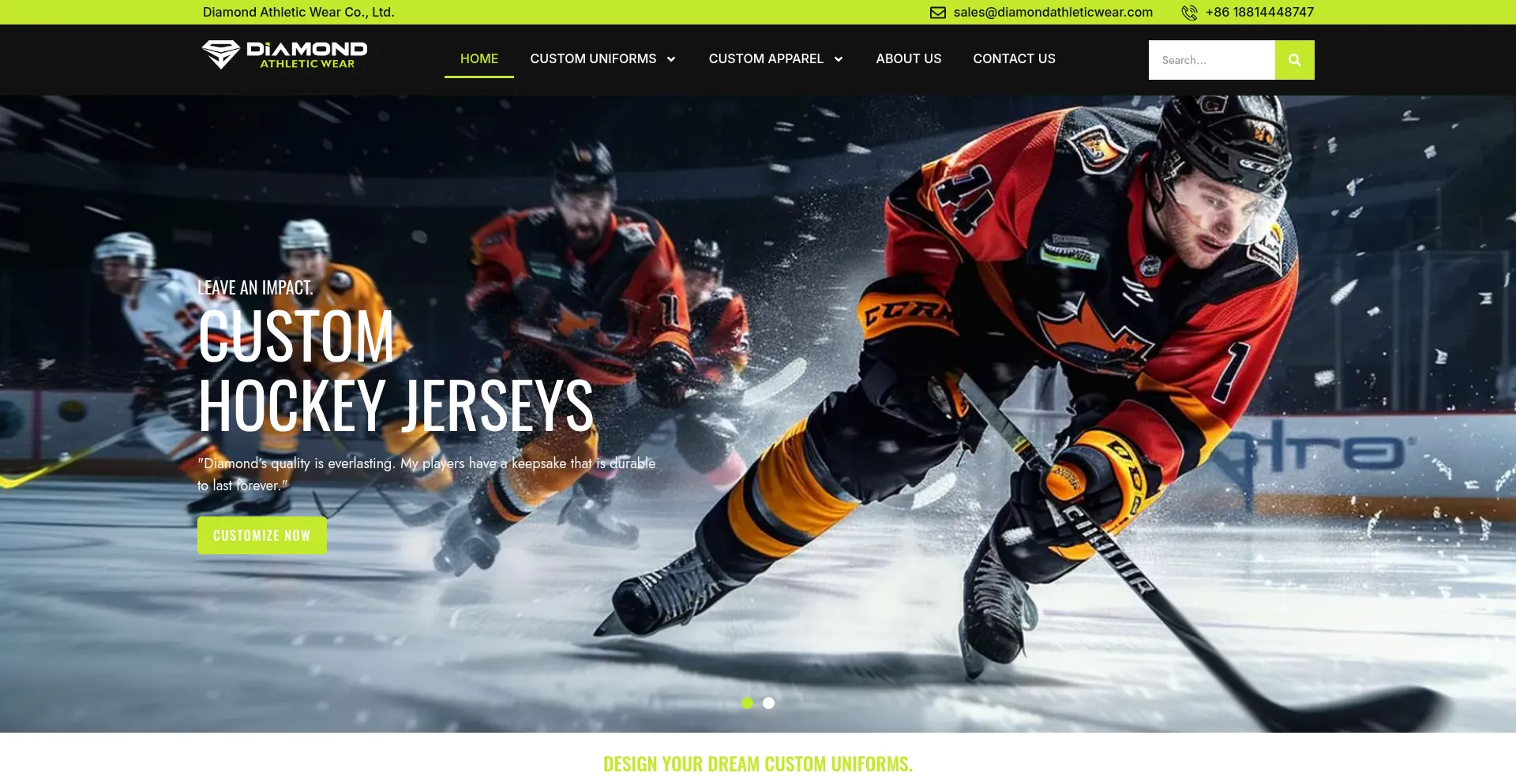 Diamond athletic wear delivers the best fully sublimated apparel to sports teams and organizations around the world.Upload your logo, rosters and colors.
