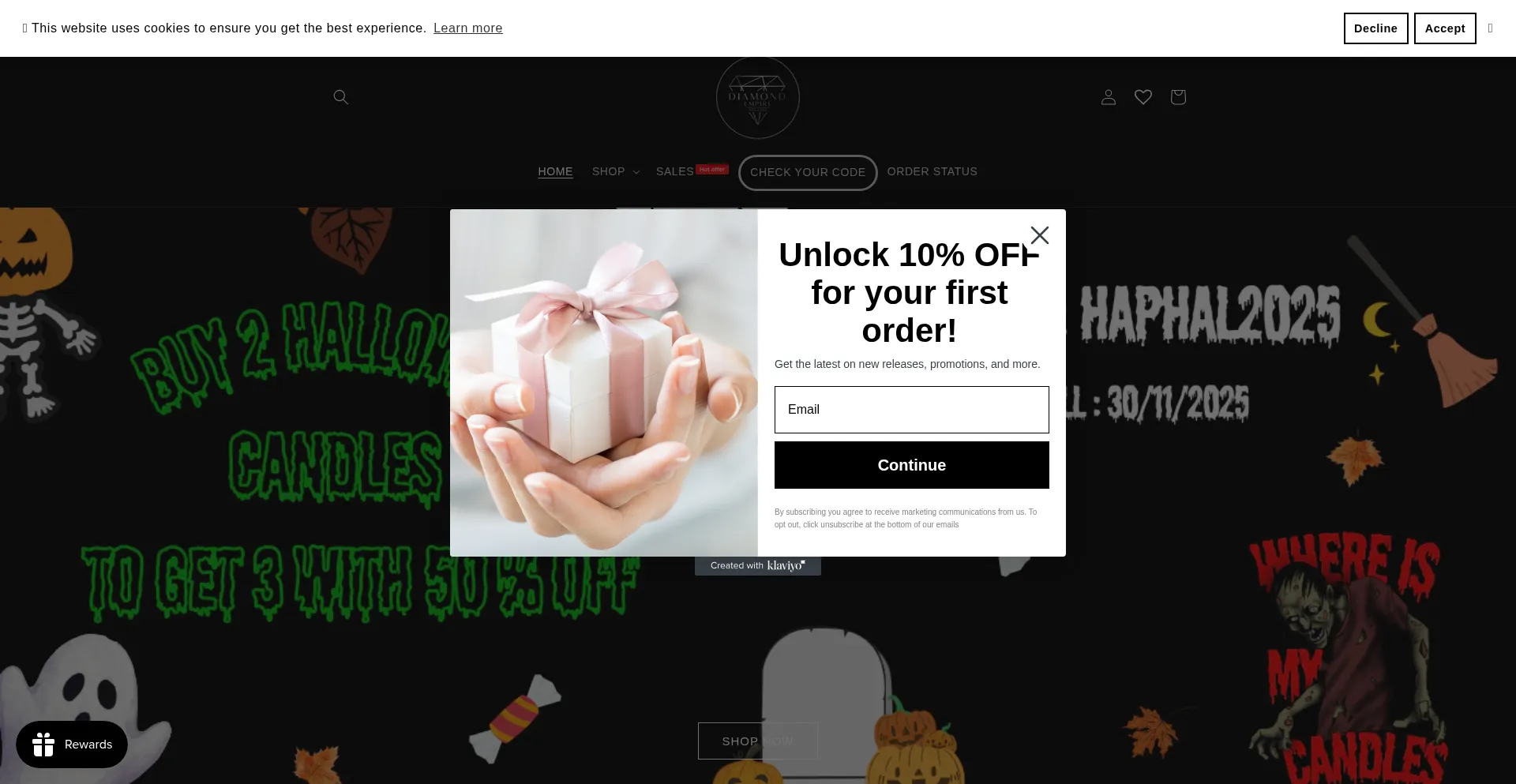 该网站实现符合GDPR或CCPA等隐私法规的cookie同意机制。这表明 diamondempirecandles.co.uk 遵守数据保护标准并为用户提供对个人数据收集实践的控制。