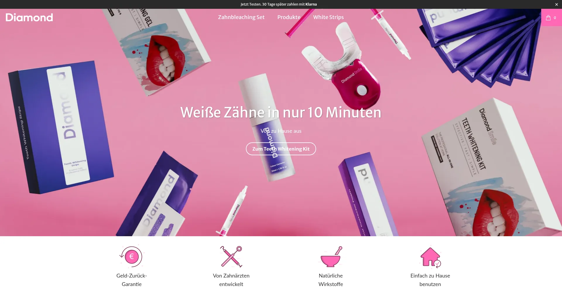 Zähne bleichen ganz einfach von zu Hause! Entdecke verschiedene Zahnbleachingprodukte zum Aufhellen deiner Zähne von Diamond Smile. Deine Zahnaufhellung in nur wenige Minuten ...