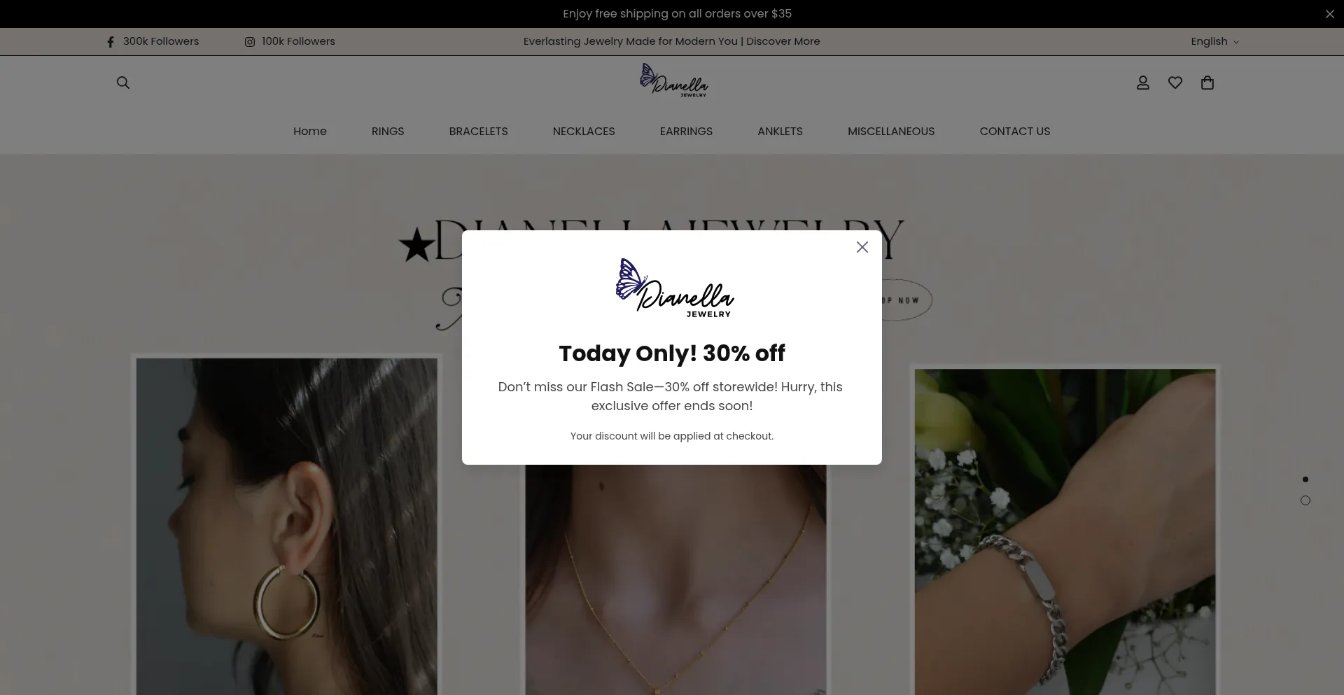 网站上存在社交媒体链接表明 dianellajewelry.store 在社交媒体上维护官方账户,这是可信度和参与度的积极信号。