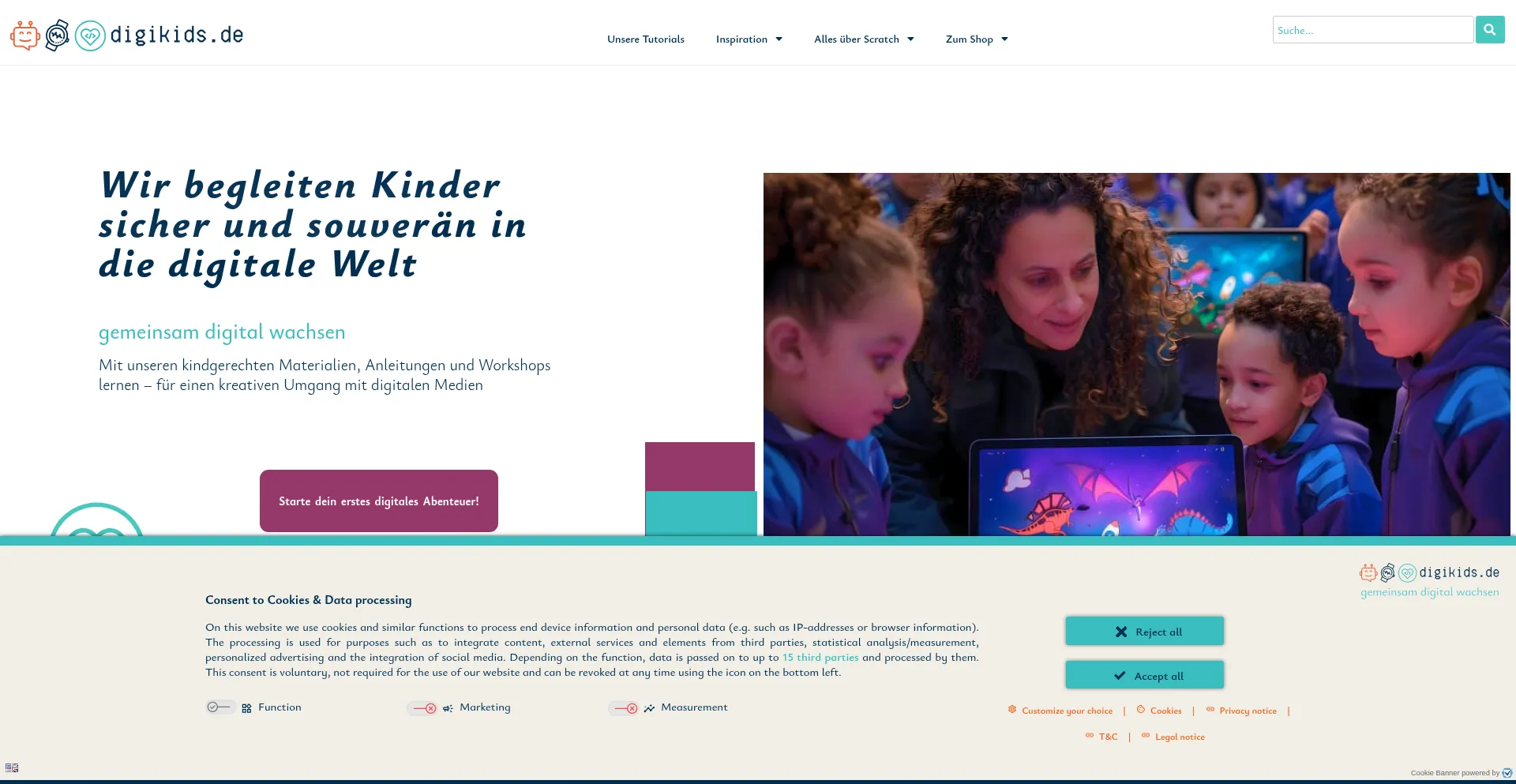 该网站实现符合GDPR或CCPA等隐私法规的cookie同意机制。这表明 digikids.de 遵守数据保护标准并为用户提供对个人数据收集实践的控制。