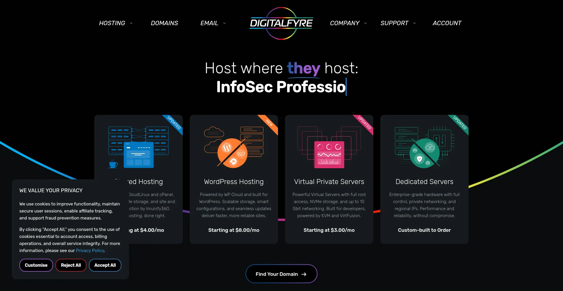 Discover blazing-fast NVMe hosting, WordPress solutions, powerful VPS, dedicated servers, and secure email hosting at DigitalFyre. 24/7 support included.
