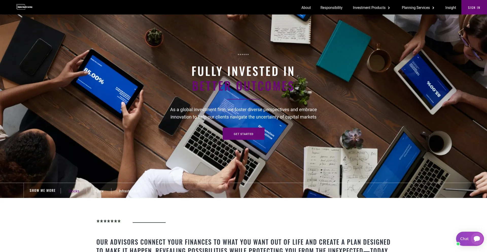 此网站提供金融服务,包括投资管理、财富咨询或财务规划解决方案。服务可能涵盖投资组合管理、投资机会、财务咨询或为个人和机构客户提供的资产增长策略。
