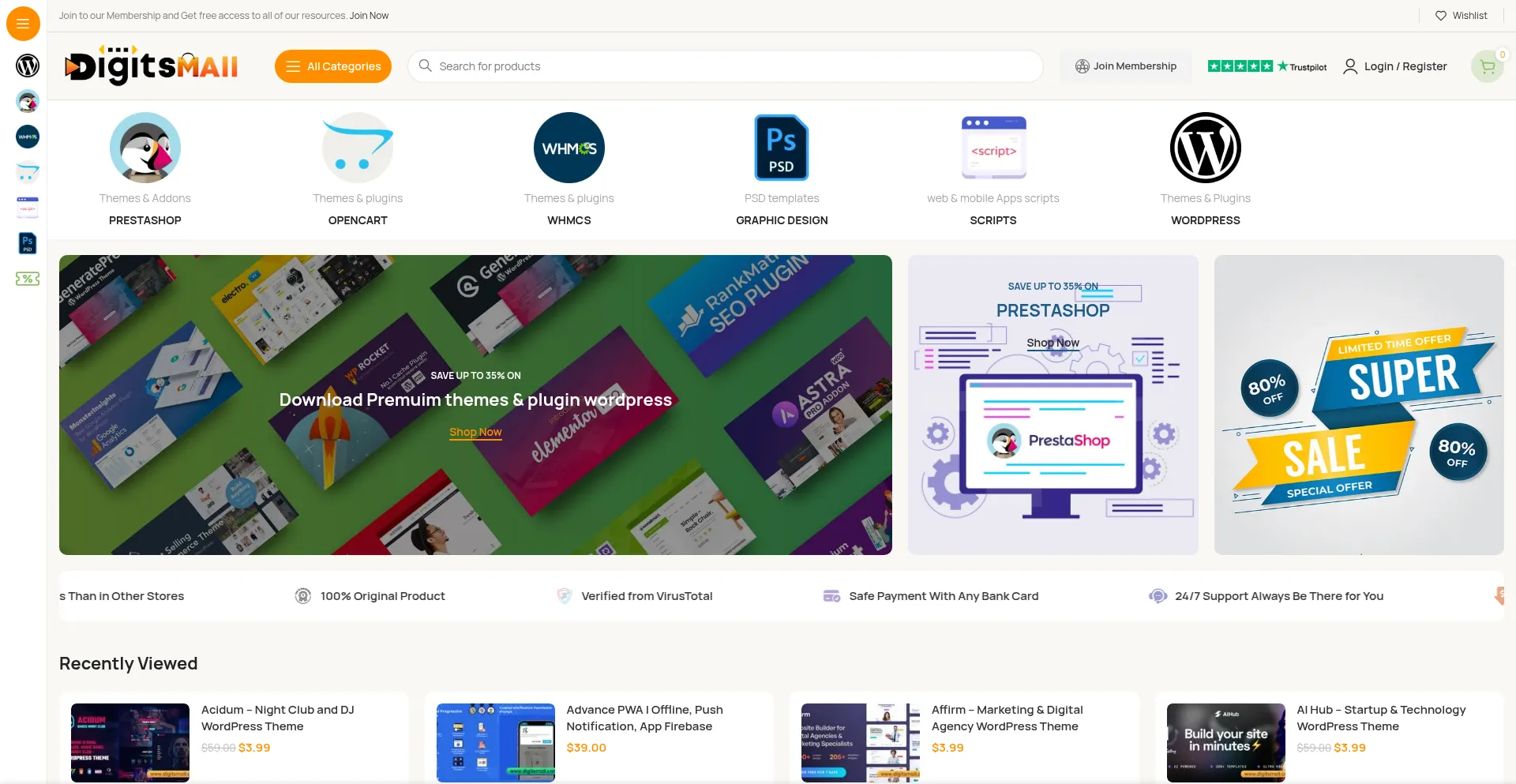 Digitsmall: Download all digital products in one biggest store of digital products at low prices: Plugins & Themes of Wordpress - Prestashop - WHMCS, PSD Templates