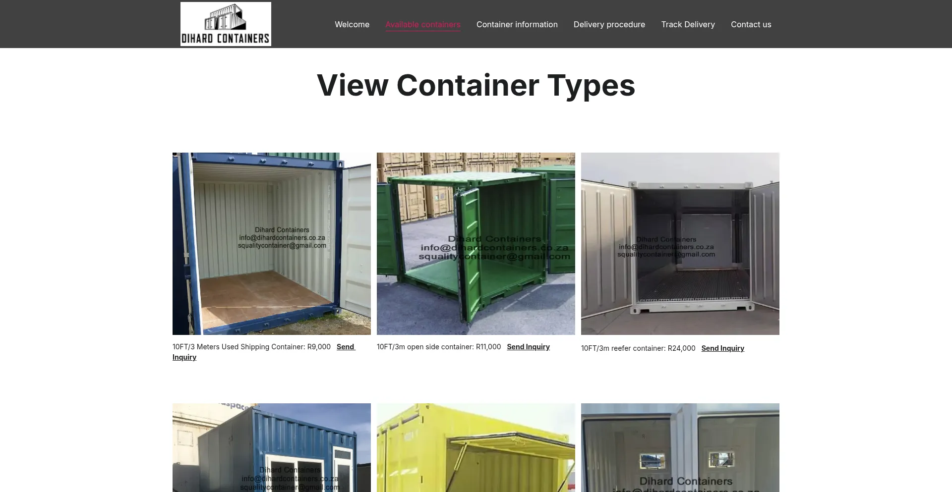 该网站实现数据收集表单,请求个人信息,包括姓名、电子邮件地址、电话号码或其他敏感详细信息。用户应验证 dihardcontainers.co.za 的合法性并在提交个人数据前查看隐私政策。