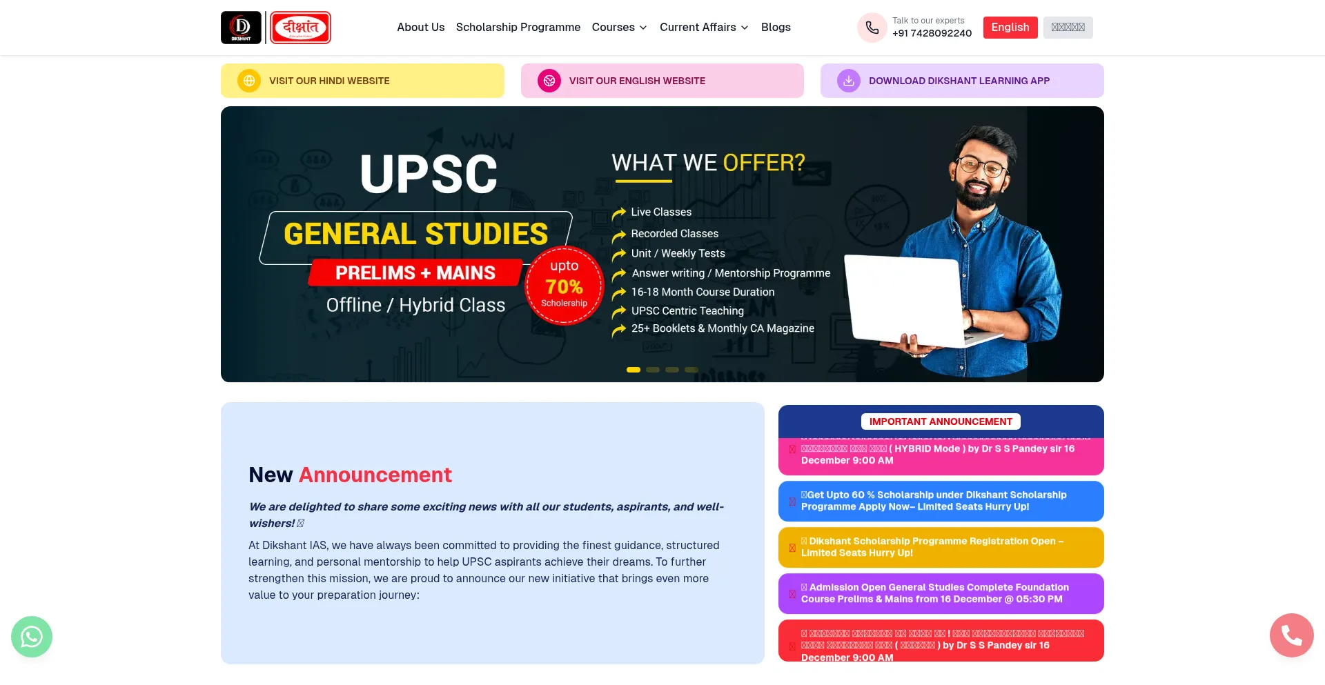 Dikshant IAS is a Best IAS coaching centre in Delhi led by Dr S. S. Pandey offering expert guidance, live classes, and personalized mentorship. Enroll today and start your IAS p...