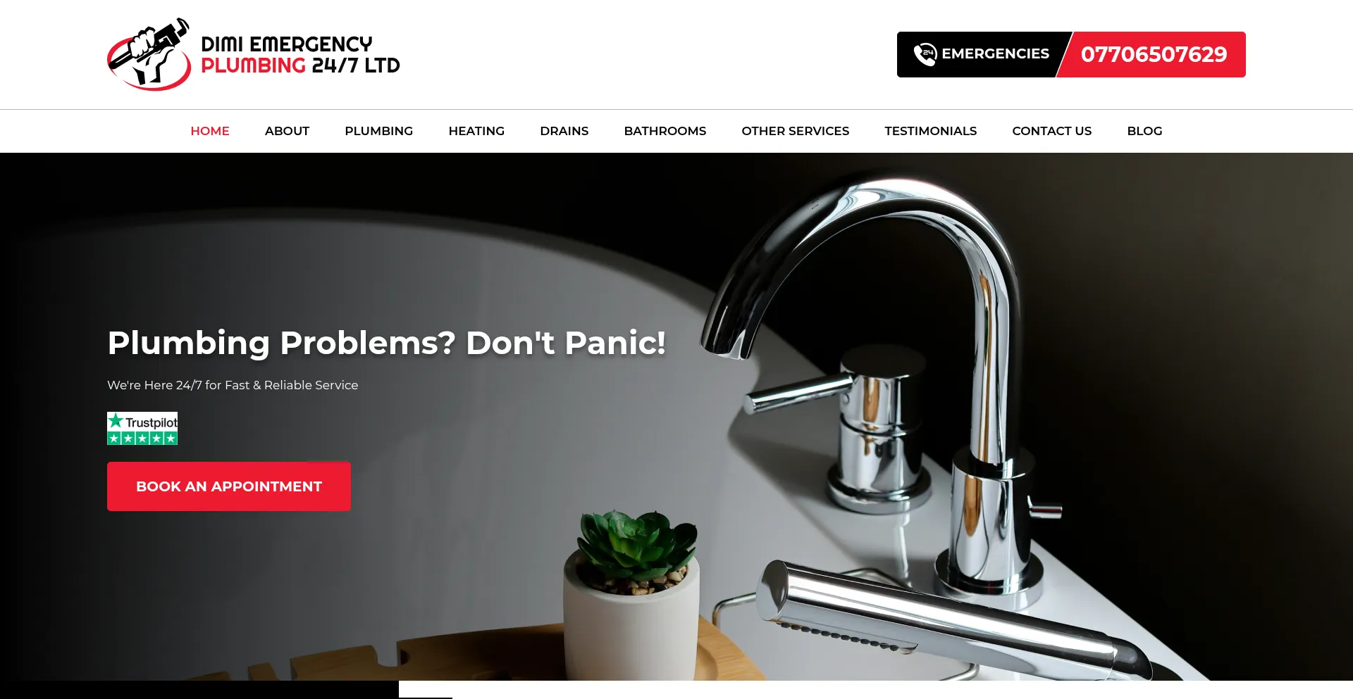 dimiemergencyplumbing247.co.uk 使用 Bootstrap,这是一个广泛采用的开源响应式网页开发框架。Bootstrap 通过标准化组件和样式实现移动友好界面的高效创建。