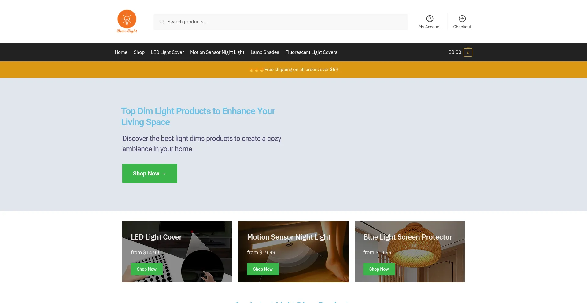 分析表明 dimslight.com 作为电子商务平台运营,促进商品或服务的在线交易。该网站实现了购物车功能、支付处理系统和产品目录功能,这些是商业零售运营的典型特征。