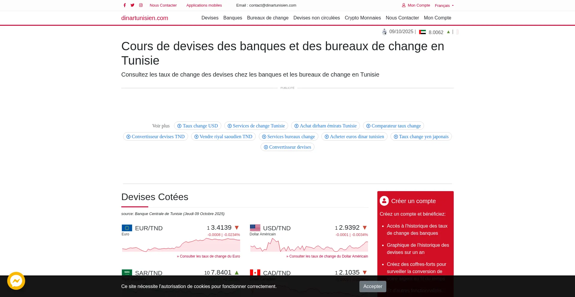 Consulter les cours de devises des banques et des bureaux de change en Tunisie et simuler la conversion en dinar tunisien