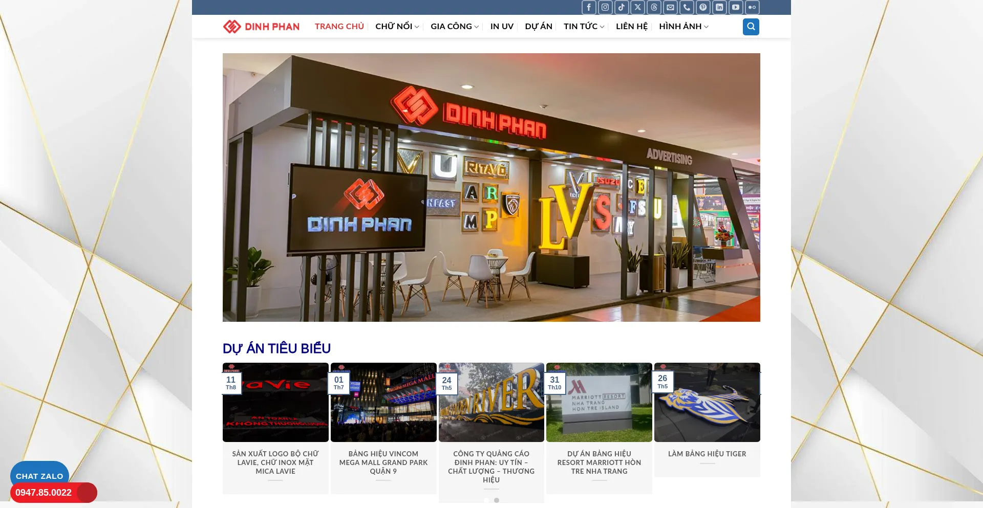 Quảng Cáo Đinh Phan chuyên gia công inox, gia công mica, mica hút nổi, in UV. Làm bảng biển dự án. Liên hệ: 0947.85.0022