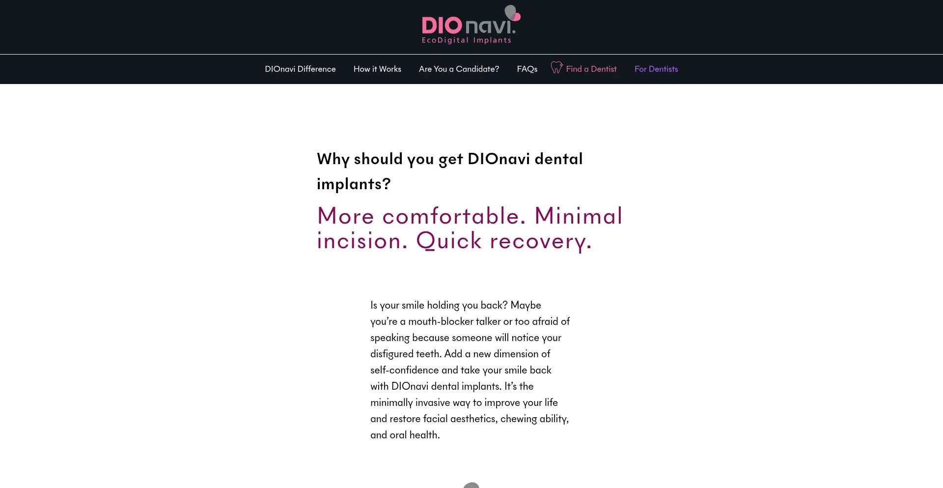 Introducing the DIOnavi Ecodigital Dental Implants, the minimally invasive, high-tech way to get the new teeth you need in as little as 2 hours.