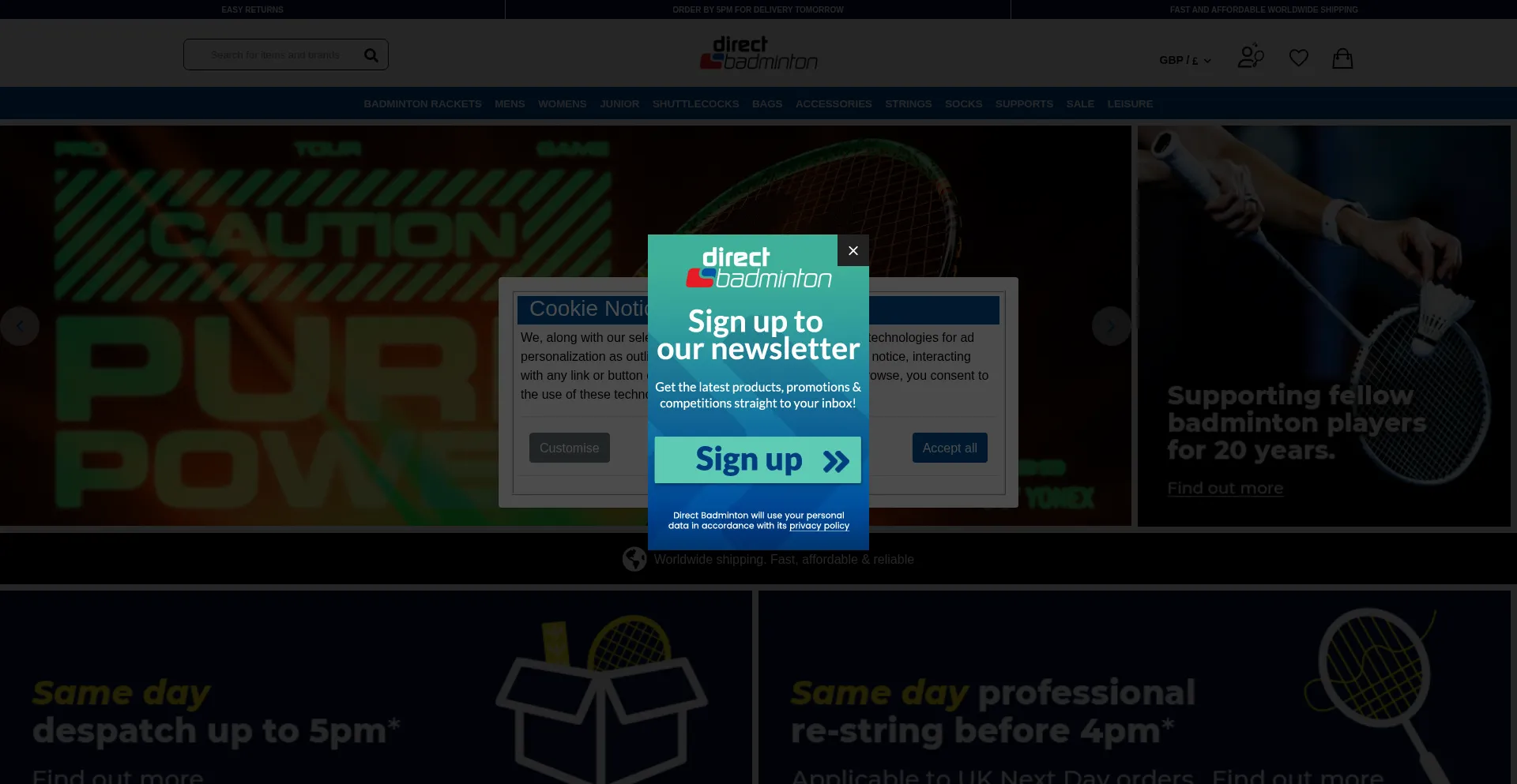 MEGASALE. Same day despatch up to 5PM.Great prices + fast delivery from leading UK Badminton website.